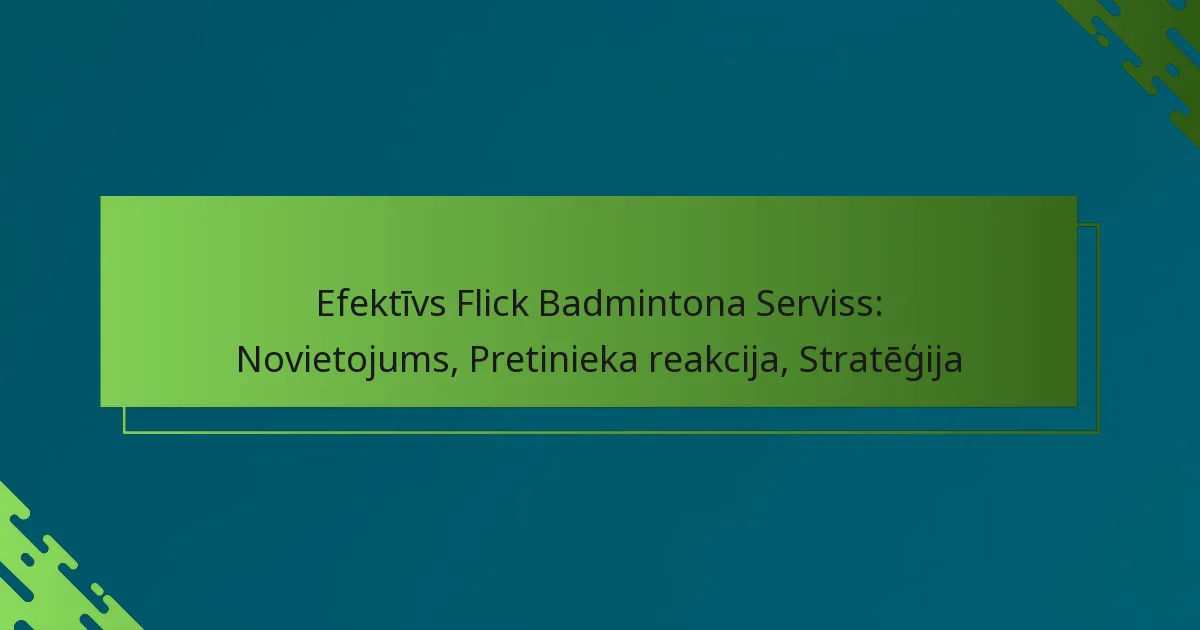 Lai efektīvi izpildītu flick serve, koncentrējieties uz ātru plaukstas kustību un precīzu laika noteikšanu, lai pārsteigtu pretinieku. Šī tehnika prasa praksi, lai apgūtu ātruma un leņķa kombināciju maksimālai ietekmei.