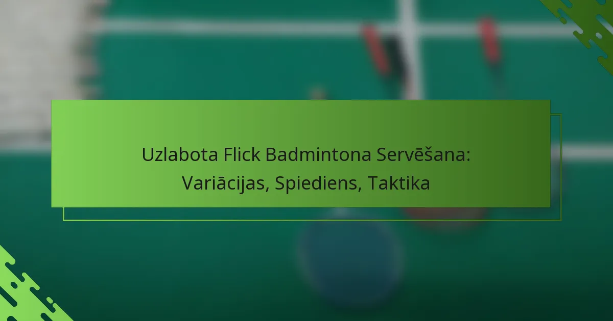 Lai apgūtu flick serve, koncentrējieties uz savu satvērienu un plaukstas kustību, nodrošinot ātru pagriezienu kontakta brīdī. Regulāri praktizējiet, lai attīstītu muskuļu atmiņu un eksperimentējiet ar dažādiem leņķiem un ātrumiem, lai uzlabotu savu efektivitāti laukumā.